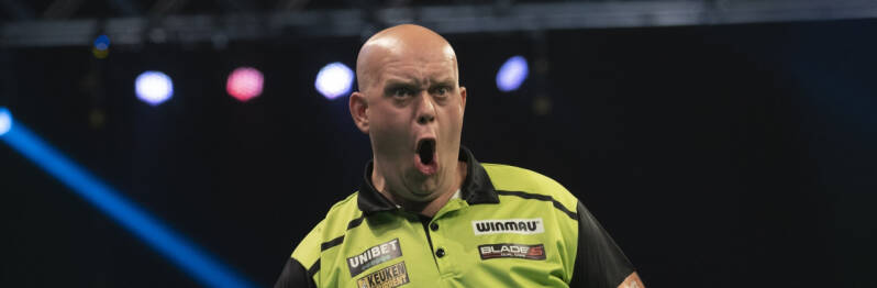 Van Gerwen gooide een gemiddelde van bijna 110 in een 8-3 overwinning op Van den Bergh en gaat de Belg daarmee voorbij in het klassement op legsaldo. Van den Bergh gooide zelf een gemiddelde van 107 en miste maar twee pijlen op dubbels, maar kon toch niet in de buurt komen van Van Gerwen.