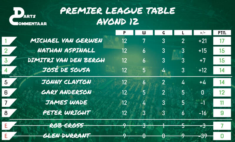 De strijd om de Play-Off plaatsen ging verder in de Marshall Arena in Milton Keynes op de avond waar Van Gerwen zijn derde overwinning op rij pakte en daarmee twee punten los komt te staan van Nathan Aspinall en Dimitri van den Bergh.